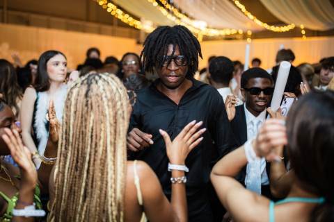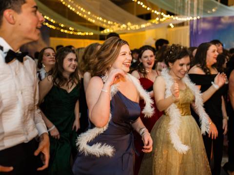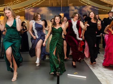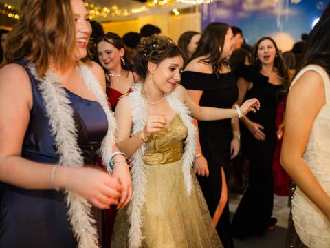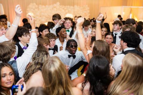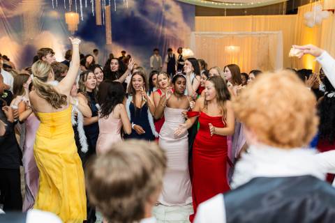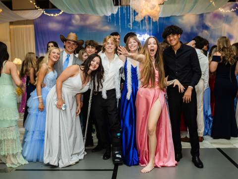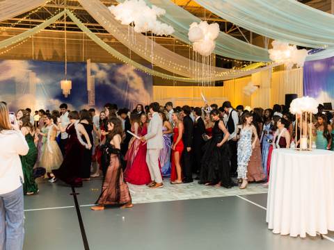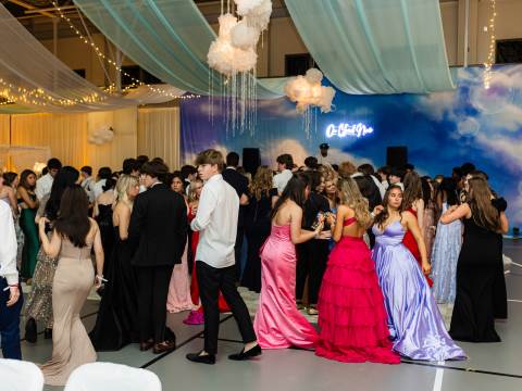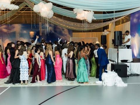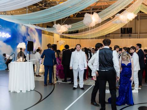 Juniors and seniors enjoyed a fun night at prom in the Johnson Field House, which was transformed to fit the theme of "On Cloud Nine."