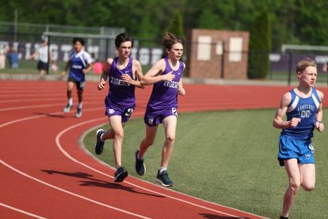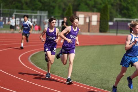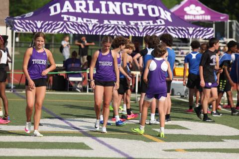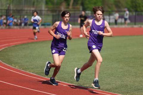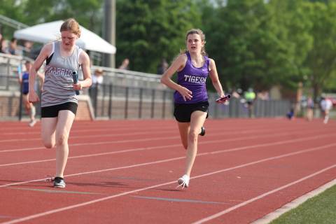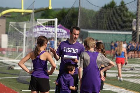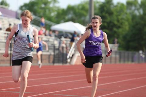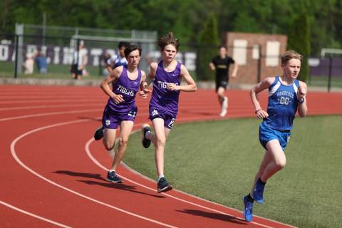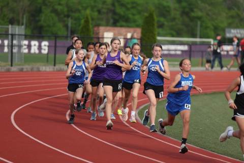 The middle school boys' and girls' track and field teams compete in a home meet, with each team earning third place.