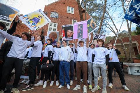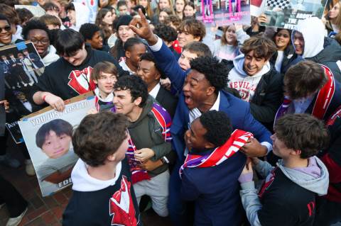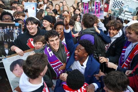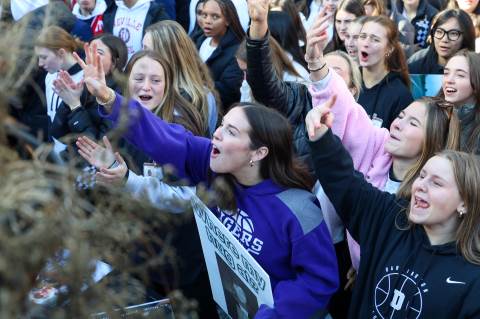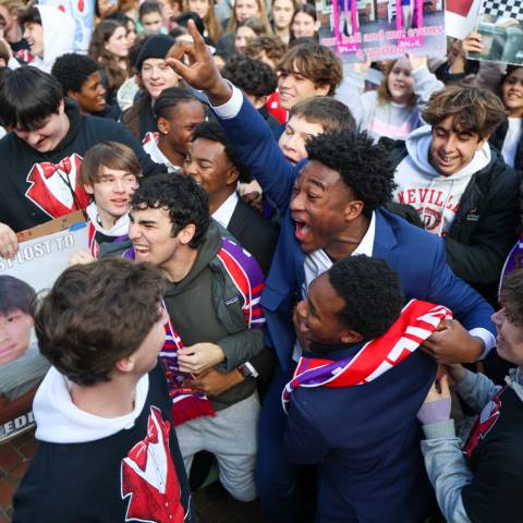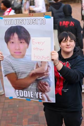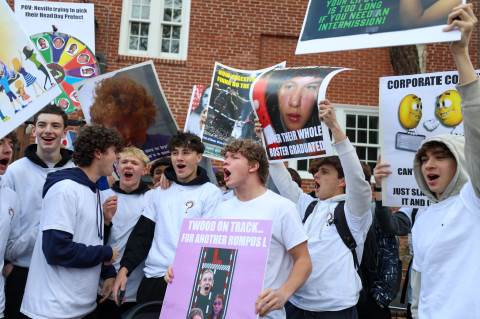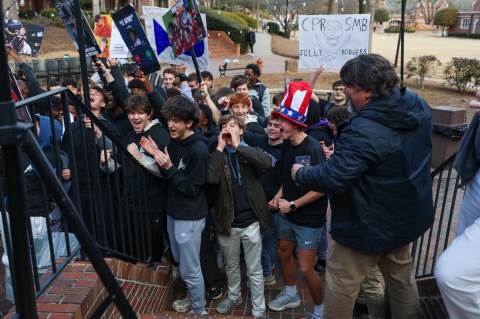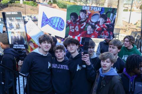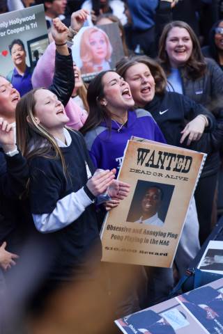 Students from each house gather together to celebrate the kick-off of RUMPUS at Gameday.