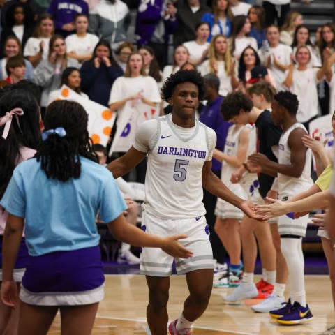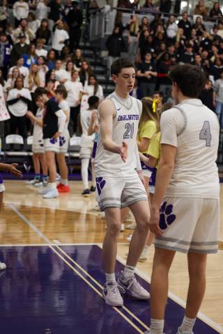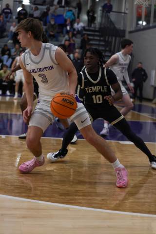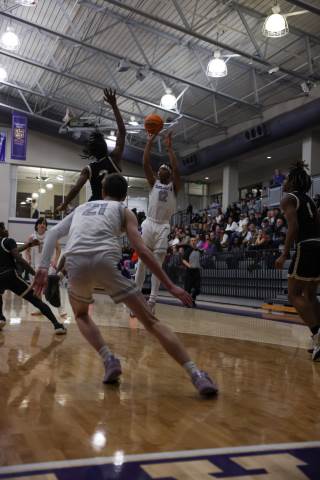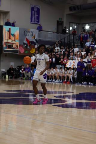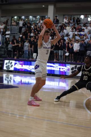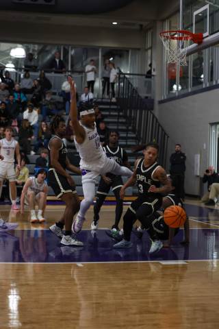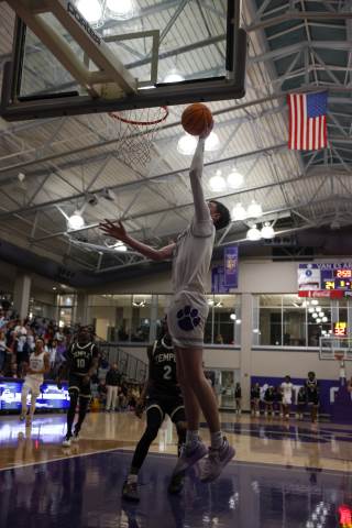 The boys' varsity basketball team competes against Temple at home during RUMPUS weekend.