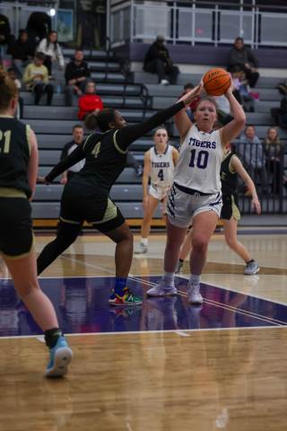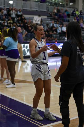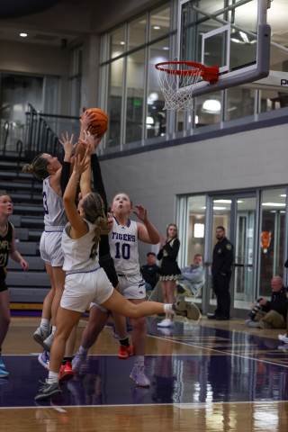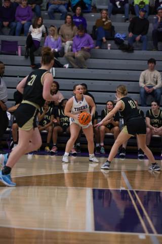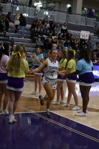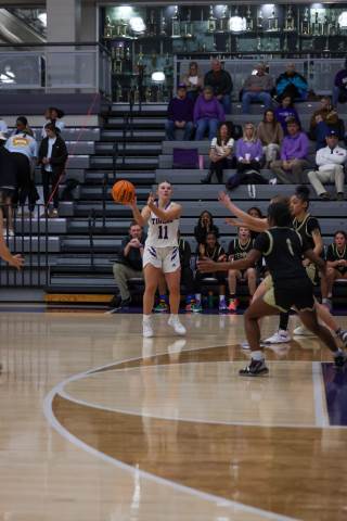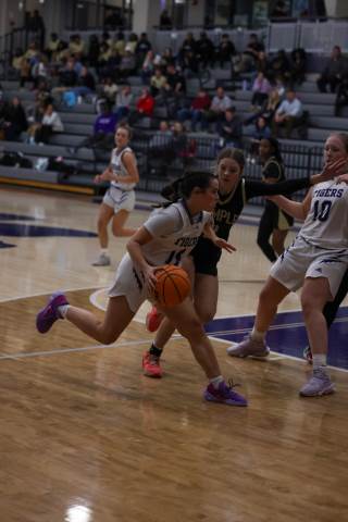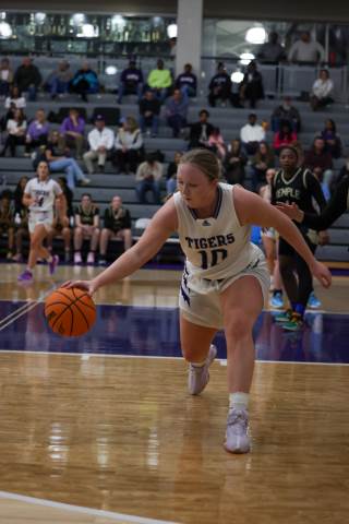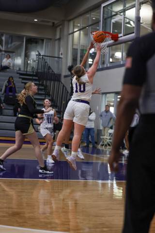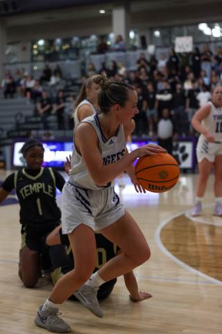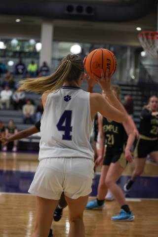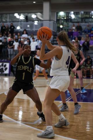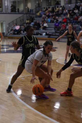 The girls' varsity baketball team competes against Temple at home during RUMPUS weekend.