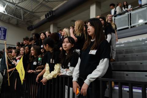 Brother-sister house teams competed in the RUMPUS Dodgeball tournament on Friday night with Regester (girls) and Moser (boys) houses joining forces to win.