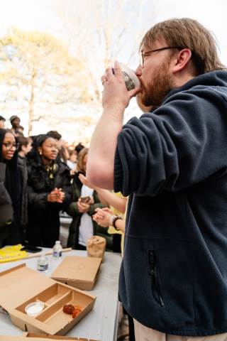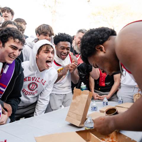 House teams race to devour mystery concoctions during the annual RUMPUS eating contest, Fear Factor, with Moser House (boys) and Regester House (girls) coming out victorious.