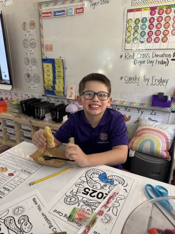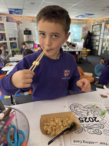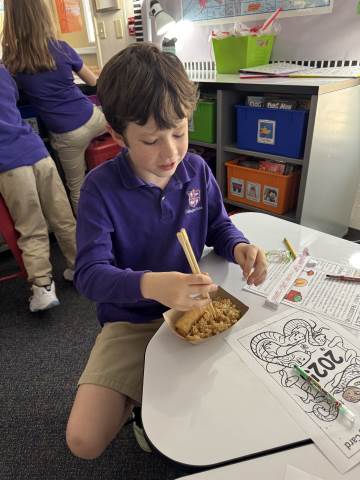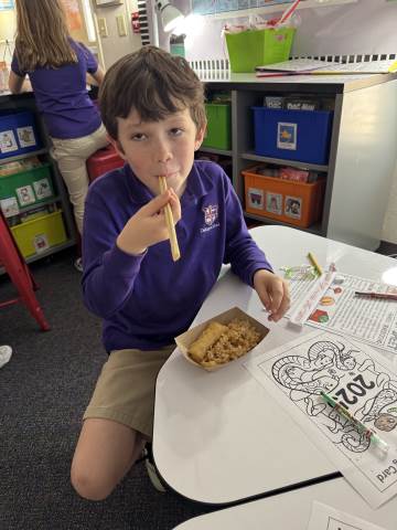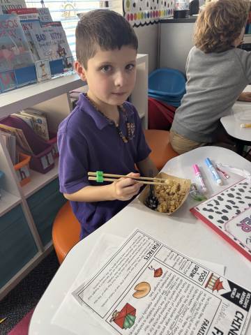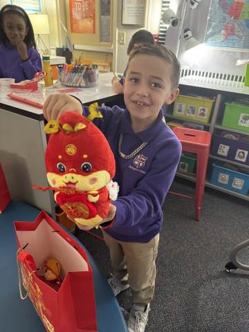 Second grade enjoyed celebrating the Chinese Lunar New Year! As a class, we read and discussed family traditions, foods, and fun facts about the Chinese New Year. Students also enjoyed receiving Chinese New Year gifts and trying delicious Chinese food.