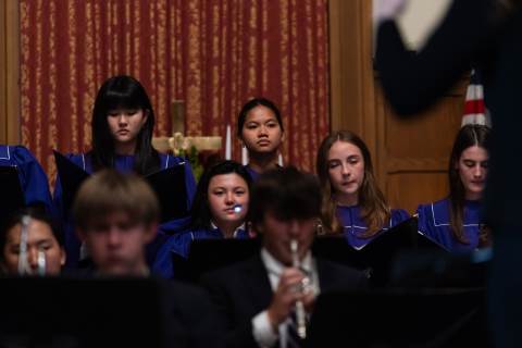 Seniors and their families attend the annual Baccalaureate service that takes places the evening before Commencement. This year's Baccalaureate featured a keynote address by Assistant Athletic Director Kevin Hunt, who was selected by the Class of 2025.