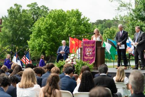The Class of 2025 and their families, friends and teachers gather on the Chapel Lawn for the 120th Commencement ceremony, which featured an address by Wendy Fitzwilliam, chairman of Dynamic 1 group of companies, Miss Universe 1998, and mother of Ailan Panton ('25).