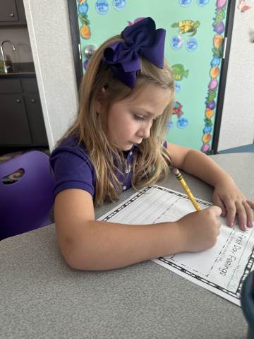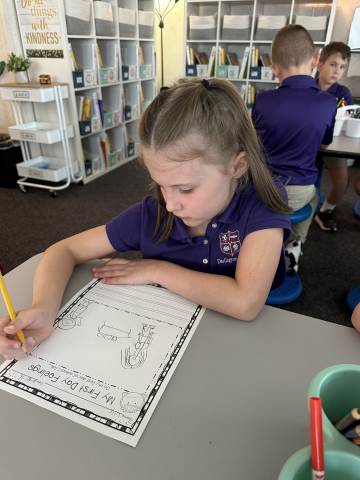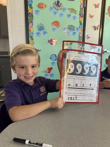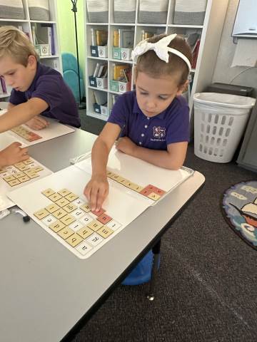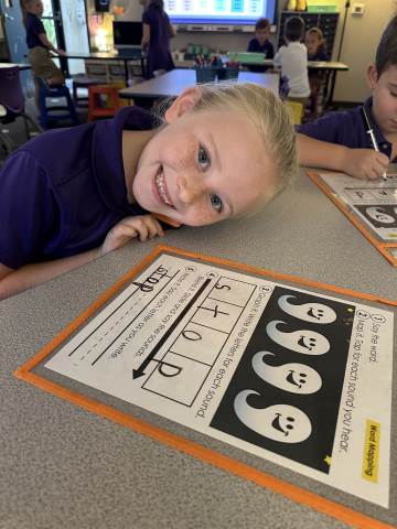 Literacy in first grade so far has been a mix of hands on centers, writing, reading and spelling. Each day students have the opportunity to work with a teacher and in small groups. This allows every child to get the instruction and practice they need. Literacy is usually a favorite time of day for our Pirates because of the variety of engaging activities to choose from.