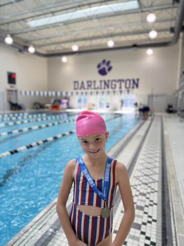 Our first through fifth grade swimmers earned their first medals for completing their first yards in the pool! Beyond learning strokes, Swim Club is all about building teamwork in an individual sport and, most importantly, having fun in the water. The program is led by Coach Shiera together with dedicated members of the varsity swim team, who serve as instructors and role models for our youngest Tigers.