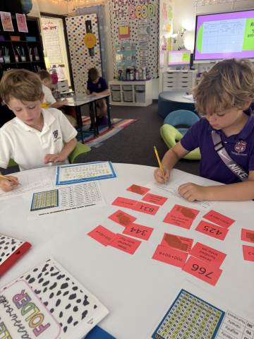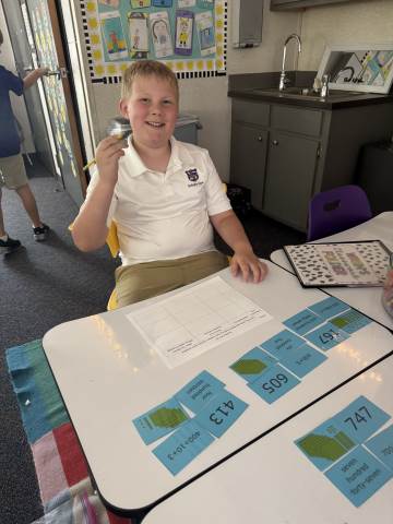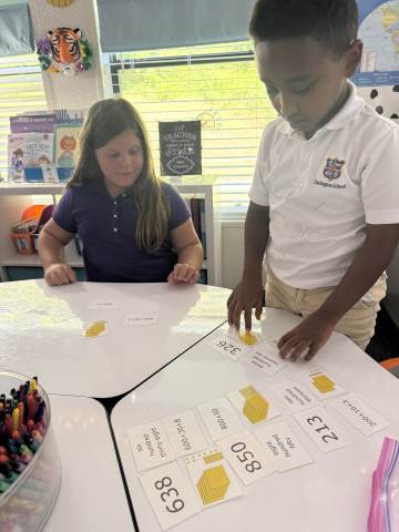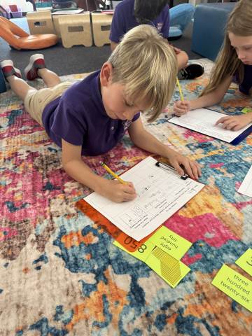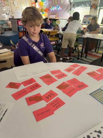 Our second-graders have been working hard building their place value understanding. They have been practicing the many different ways you can represent a number. Students worked in groups to play a place value match-up games. They had to match up all the ways to represent each given number - standard form, expanded form, base-ten drawing, base-ten numerals, and word form.