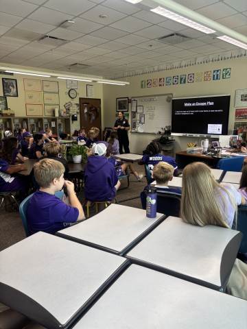 The fifth-grade students had their first Floyd County Fire Prevention lesson from Mrs. Farrar. The students learned about fire escape plans and how to communicate and practice what they learned with members of their family.