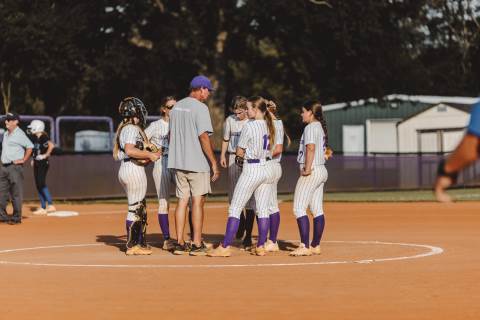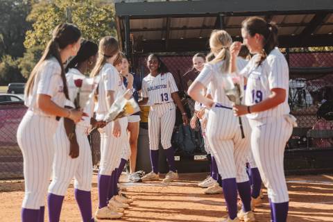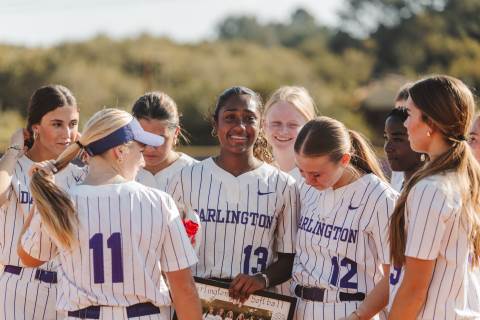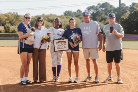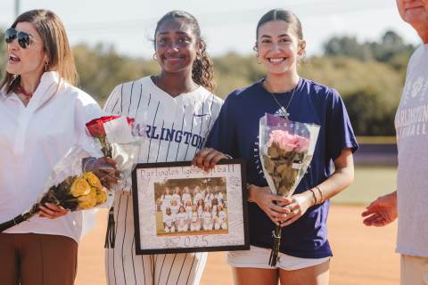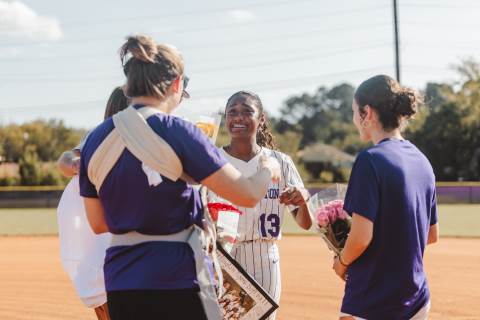 The softball team competes against Armuchee at home following a Senior Night recognition.