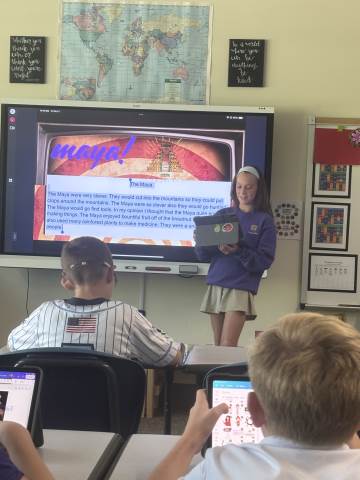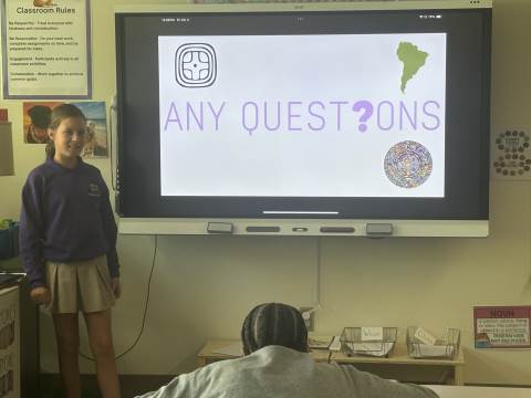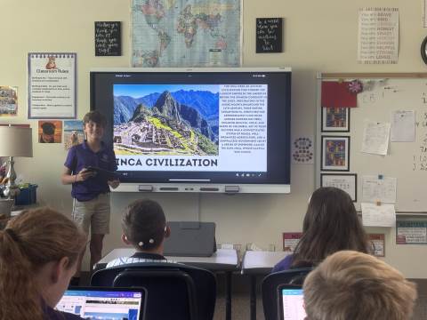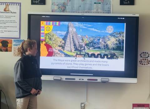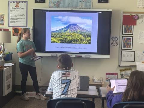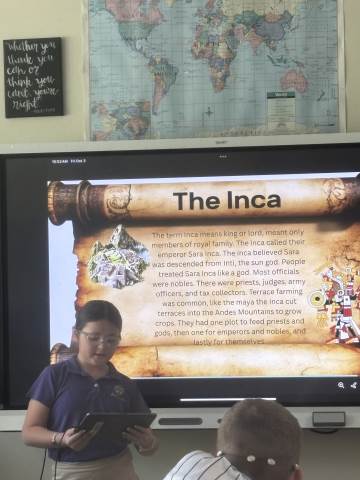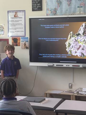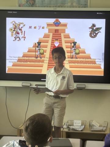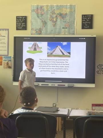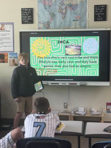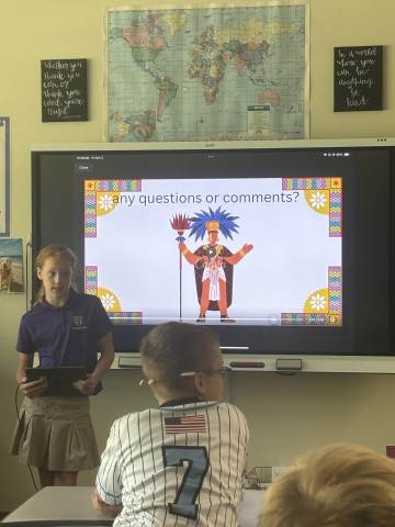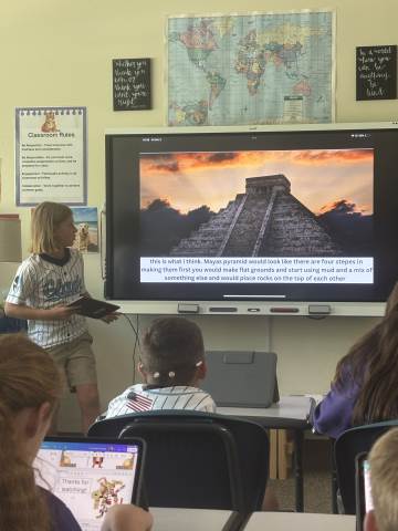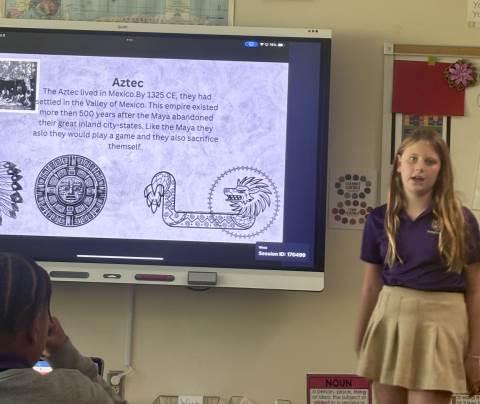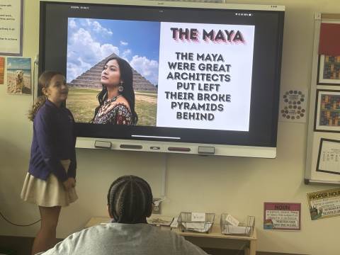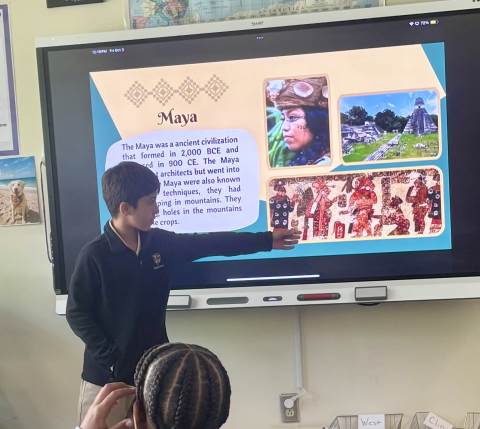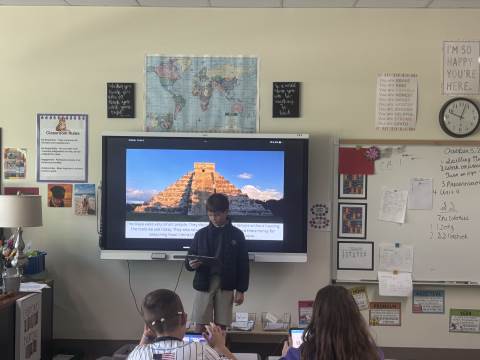 Fifth-graders wrapped up their unit on the Maya, Aztec, and Inca civilizations by researching, creating presentations, and sharing their insights with the class, demonstrating strong understanding and communication skills.