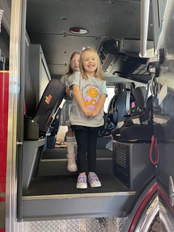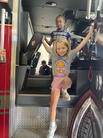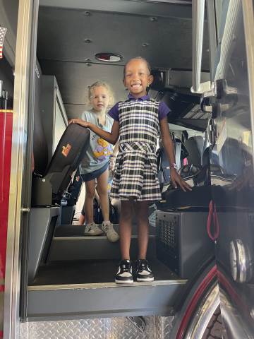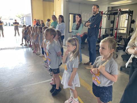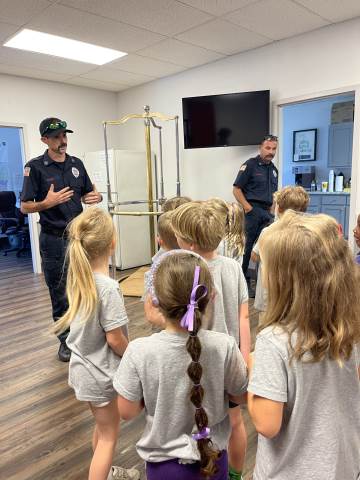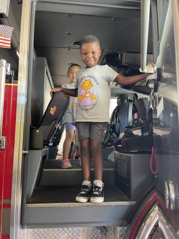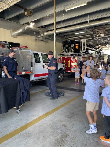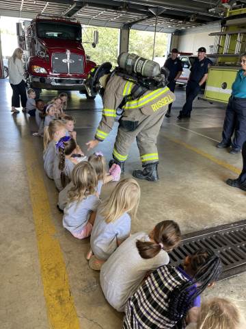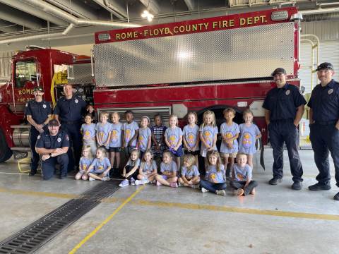 Kindergarten students culminated their study of fire safety with a visit to Rome Fire Department Station #1. We learned many safety tips, such as "stay low and go" if there is a fire. We got to see where the fire fighters sleep, study and eat. The highlight of our trip was getting into the fire truck and watching the firefighters slide down the pole!