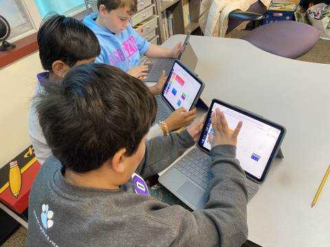 Fourth grade took the opportunity to explore virtual fraction tiles and generate equivalent fractions. Students practiced building, notating, and sharing equivalent fractions and then reflecting on patterns they noticed to see the relationship with numerators and denominators.