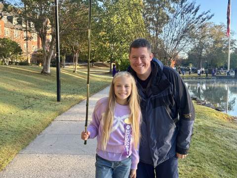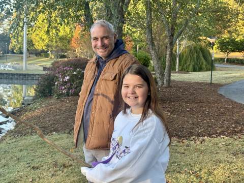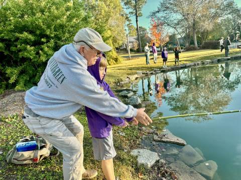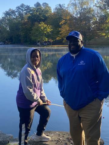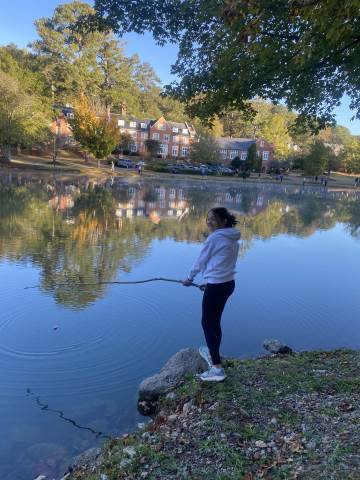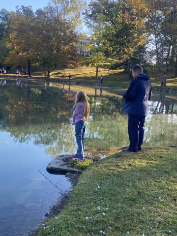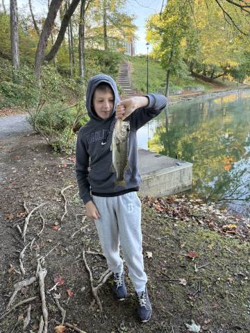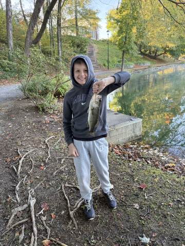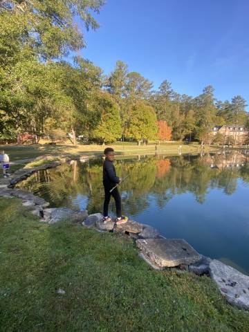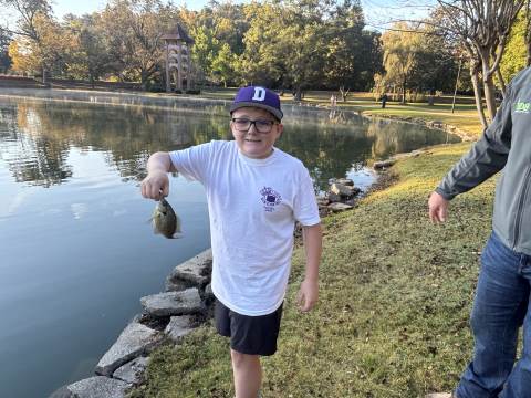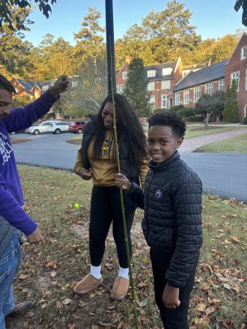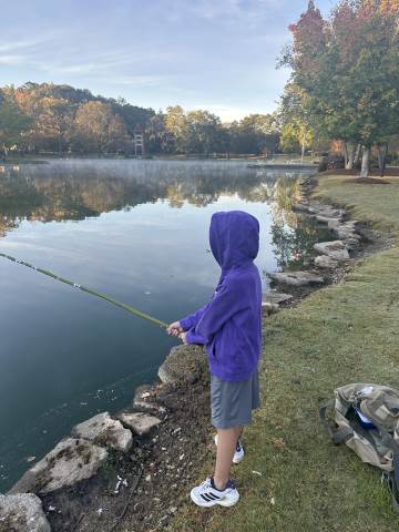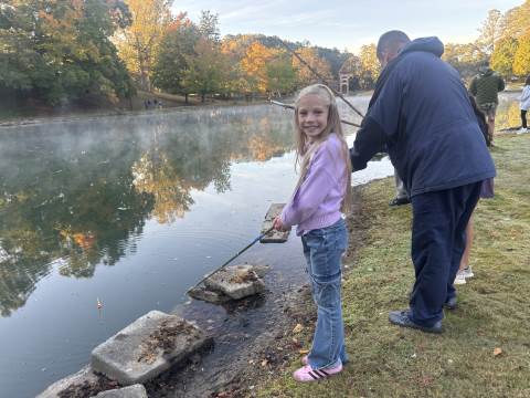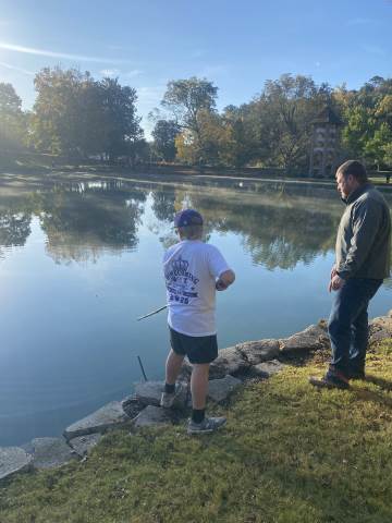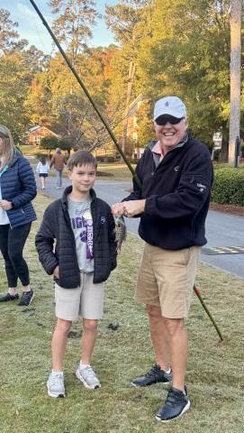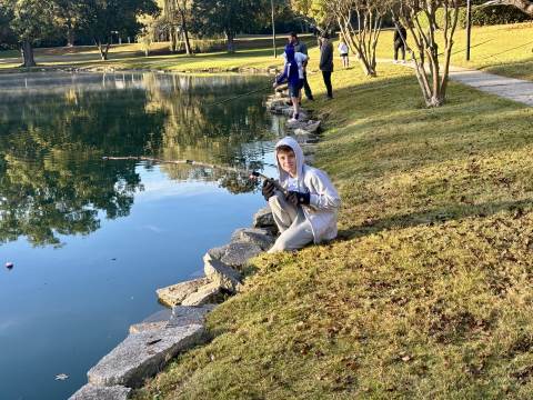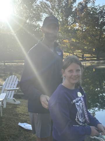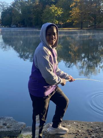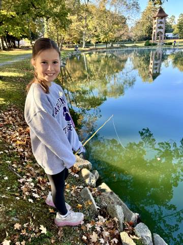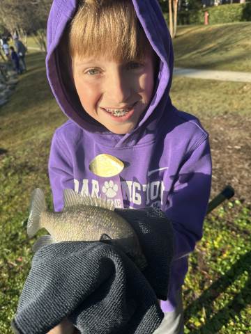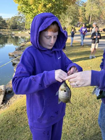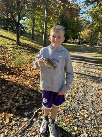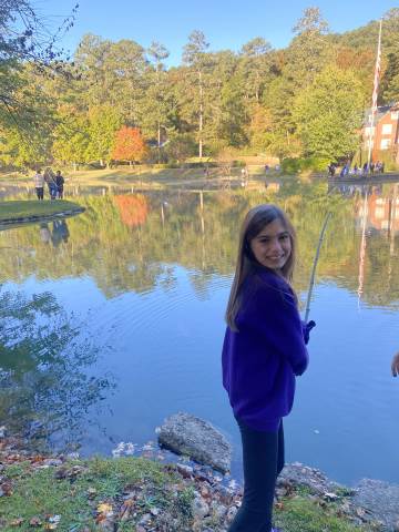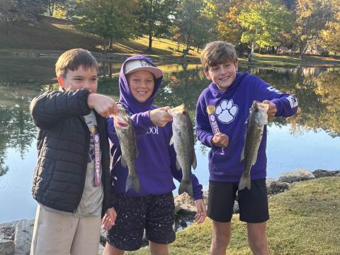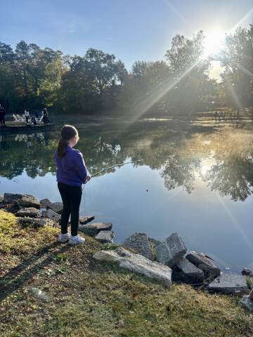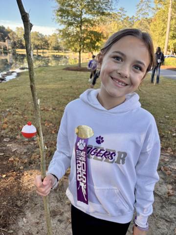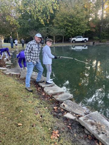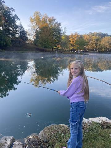 Fifth-graders read Gary Paulsen's adventure novel, "Hatchet," as their first novel in literature. The story's protagonist, Brian, must find a way to survive in the Canadian wilderness after his plane crashes. As part of our annual "Hatchet Day," students were challenged with creating their own fishing pole to catch fish in Silver Lake. This year's class caught 60+ fish!