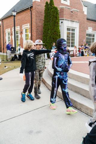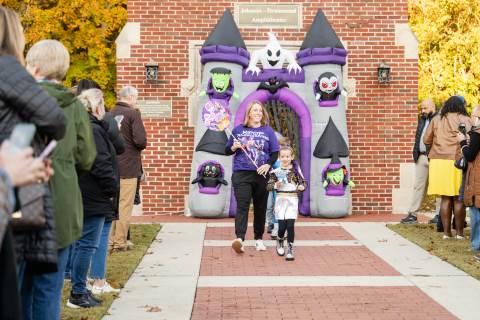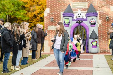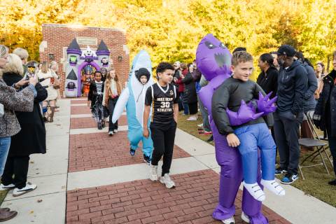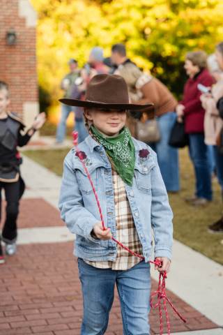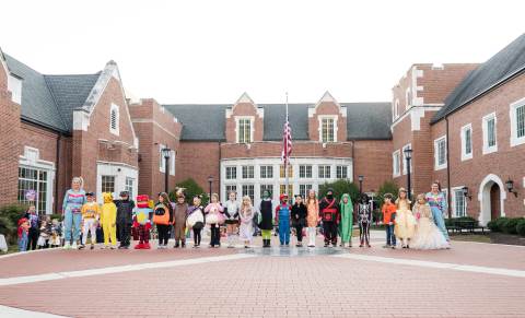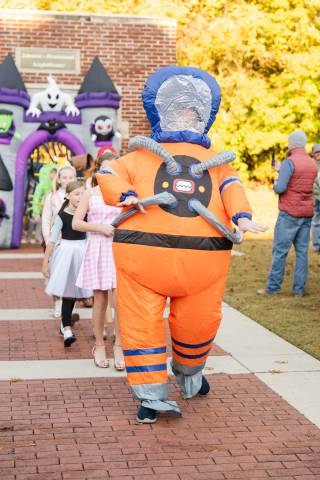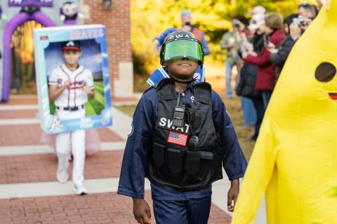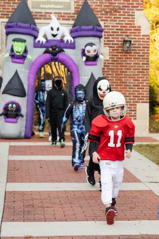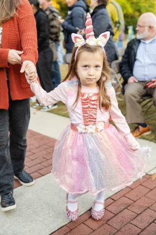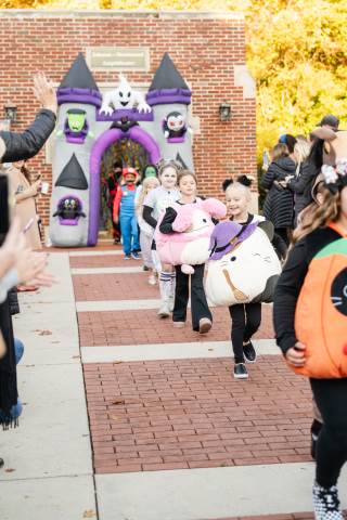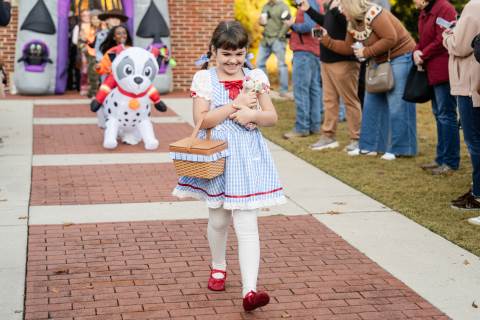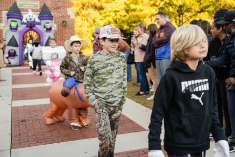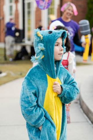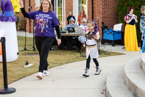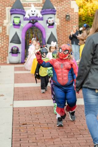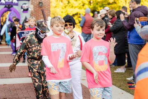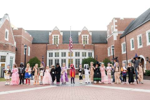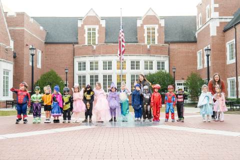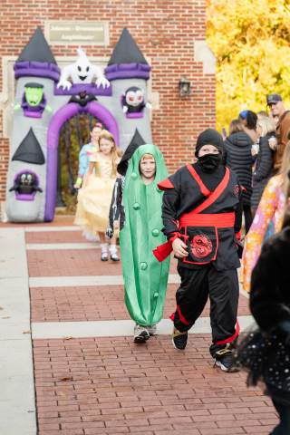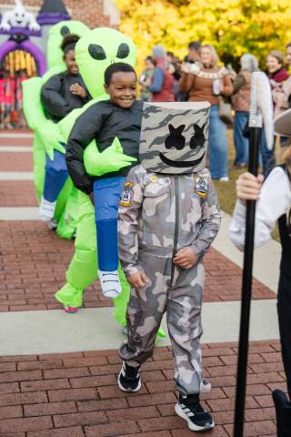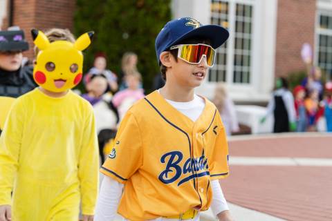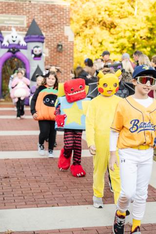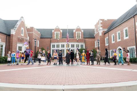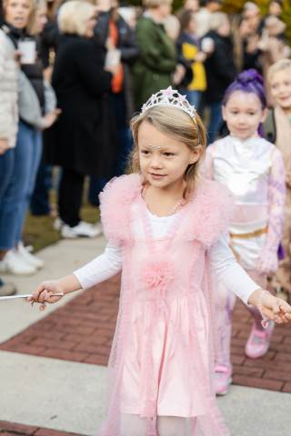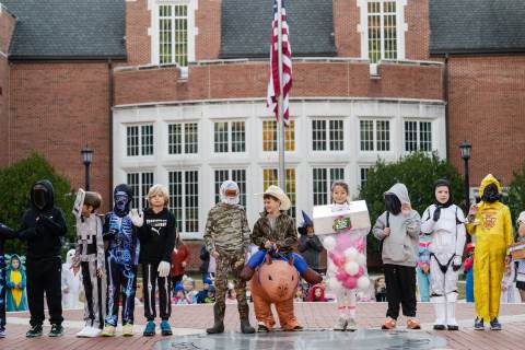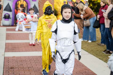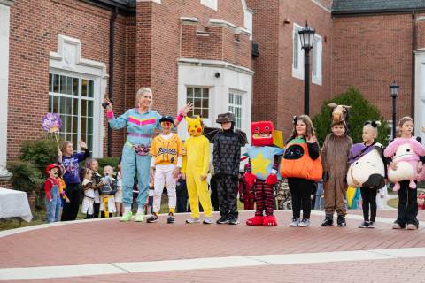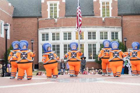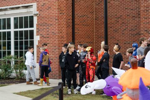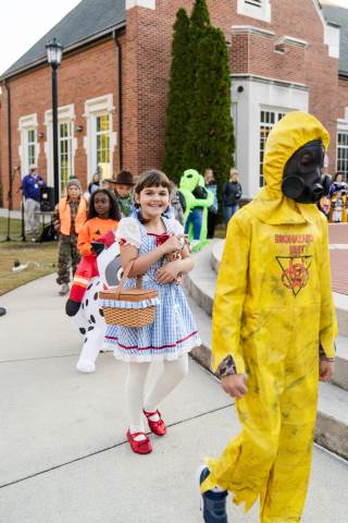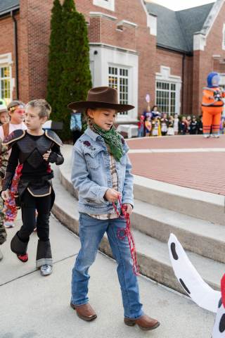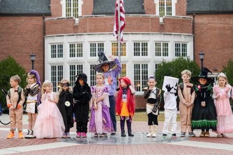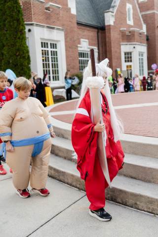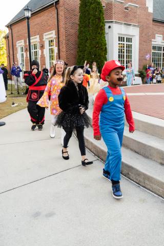 Students in grades pre-K to 5 show off their Halloween costumes at the annual parade before advisory groups representing grades 6-8 perform their skits for parents and special guests.