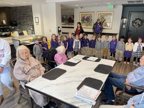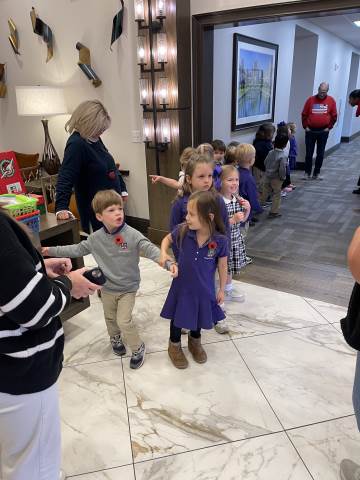 Pre-K enjoyed a great morning celebrating our veterans. We first stopped by Myrtle Hill to perform a wreath laying ceremony at Veterans Plaza. Then we waved flags and thanked the veterans in the parade on Broad Street. Finally, we went to The Spires to spread some joy and make patriotic bracelets with the residents in Magnolia Place. We also played Thanksgiving memory with our new friends. What a great day celebrating our country and the freedoms that we often take for granted!