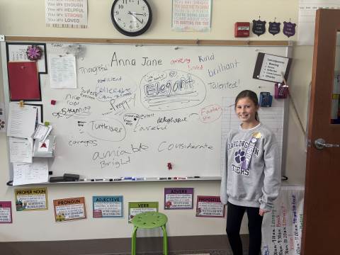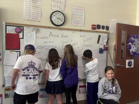 Fifth-graders enthusiastically revisit adjectives while exploring the thoughtful ways their peers express admiration.