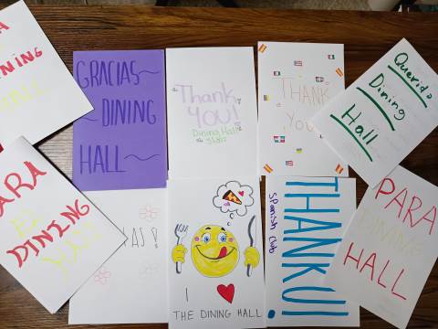 Students from the Spanish Club iPeriod wrote bilingual thank you letters to express appreciation to the wonderful staff in our dining hall. The goal of this activity was to build a meaningful cultural and linguistic connection, allowing students to use Spanish in a real, authentic context while showing gratitude to members of our school community. Students wrote their messages in both English and Spanish, practicing language skills, cultural awareness, and empathy.