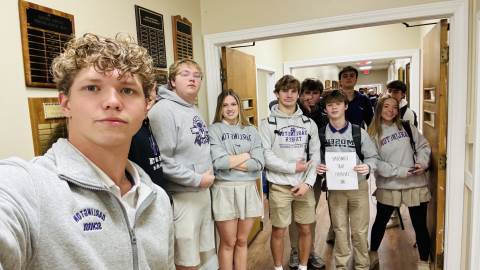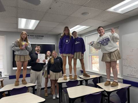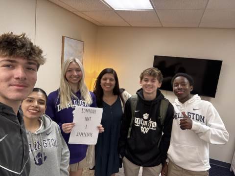Upper School advisory groups completed a gratitude scavenger hunt to celebrate Thanksgiving! Each group took pictures with different faculty, staff and students that they're thankful for.