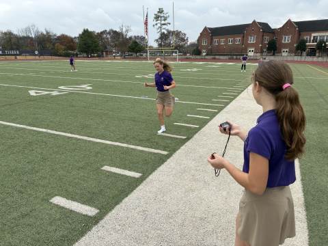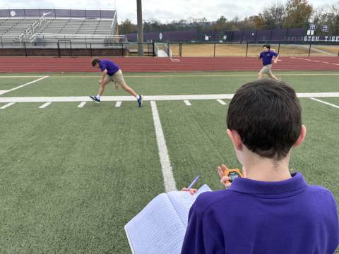 In Mr. Eberhart’s sixth-grade math class, we learned how to figure out our own speeds on the football field. We all set up labs near the field to make sure our speed was steady. We measured our times based on how far we ran, and then we calculated our speeds in miles per hour to compare to other people and animals. It was a blast running around the field!