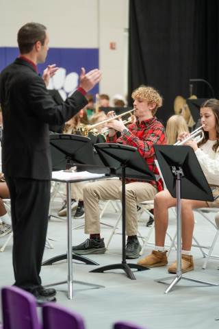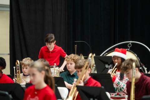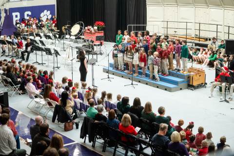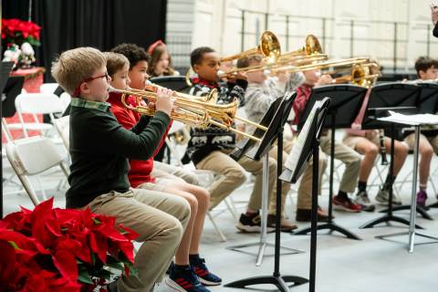 Pre-K to 8 students in Chorus, General Music, Band, Orchestra, Strings and Drama perform Christmas pieces for friends and family at the annual Pre-K to 8 Holiday Festival.