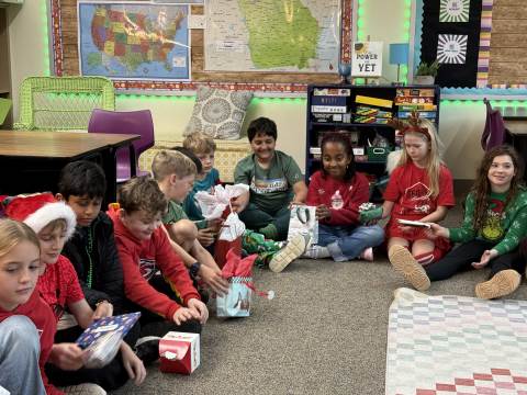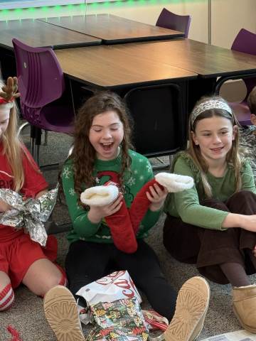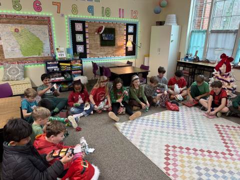Fourth-graders celebrate a wonderfully successful semester by reading a story while rotating silly socks, playing board games, and enjoying a wonderful treat from their room moms. Merry Christmas and Happy Holidays from fourth grade!