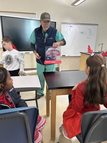 Third grade is studying the human body in literacy and science. We were very fortunate to have a guest speaker, Rosie's Papa, Dr. J. Michael Ware, a cardiologist with Advent Health here in Rome. He shared his knowledge of the heart and all the work he does to keep people healthy or fix them when they need it. He told us about the chambers of the heart and how those chambers pump the blood and take care of our bodies.