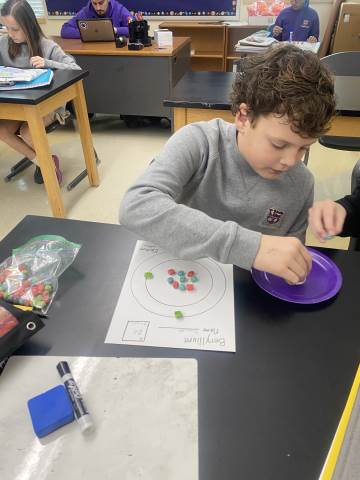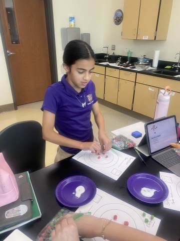 Fifth-graders are studying matter and atoms. In a recent lab, the students used cereal to create a model for element beryllium.