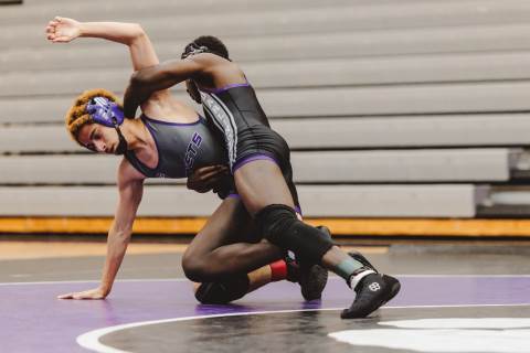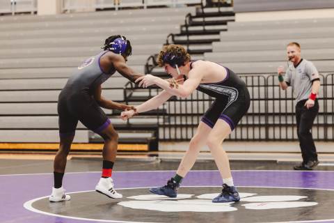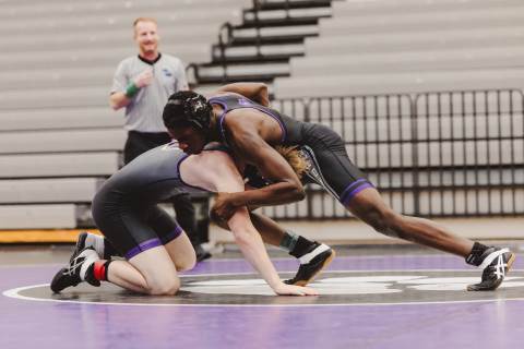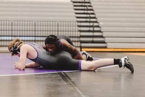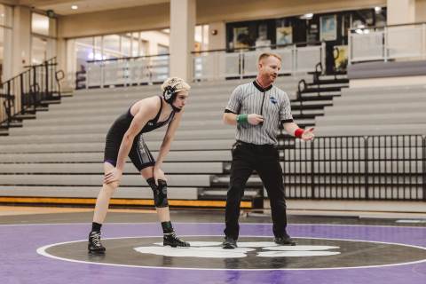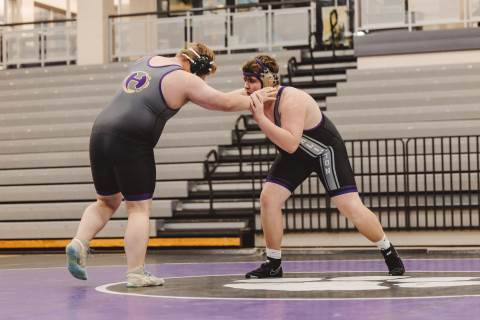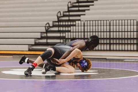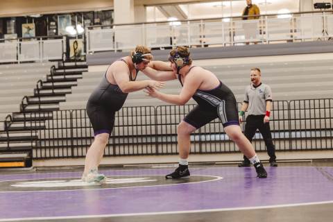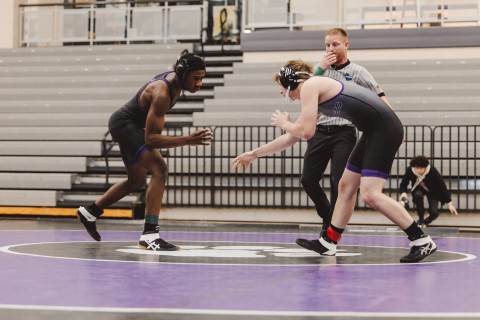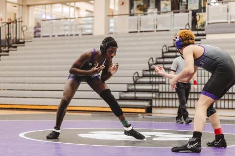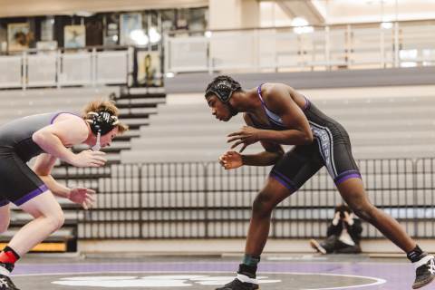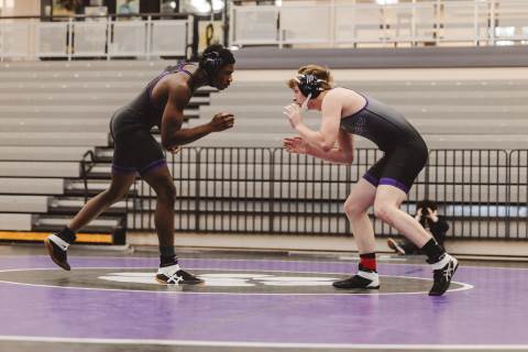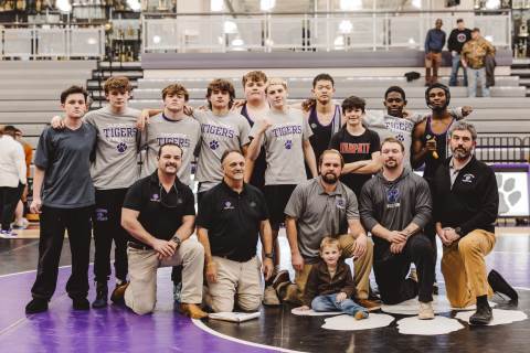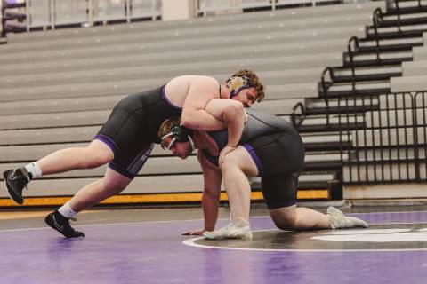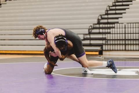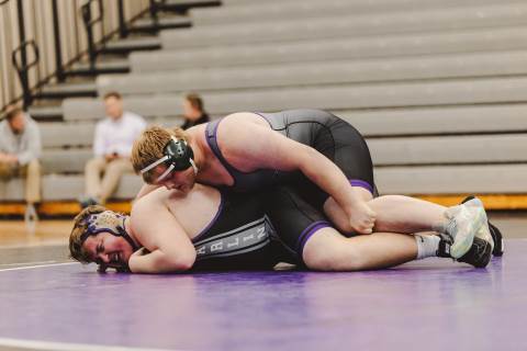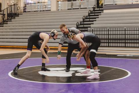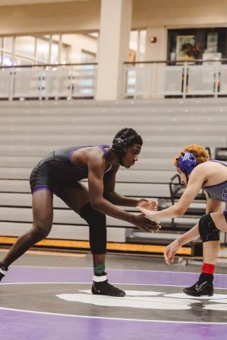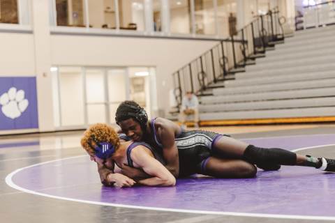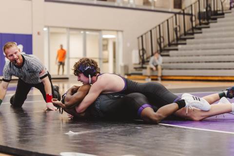 The varsity wrestling team competes against Hiram at home.