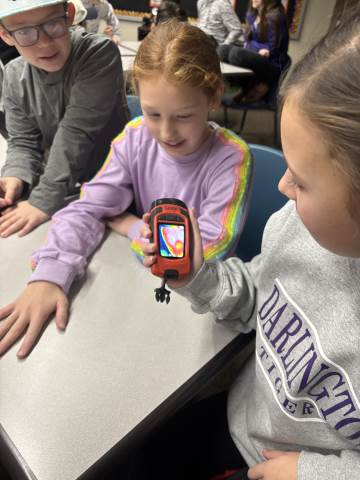 Fifth-graders explore thermal cameras during our monthly fire prevention training.