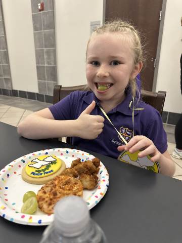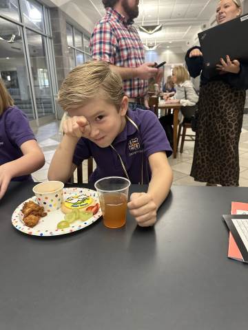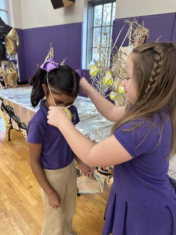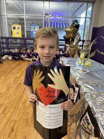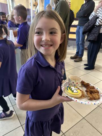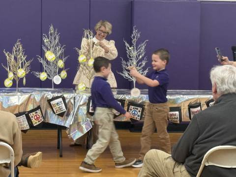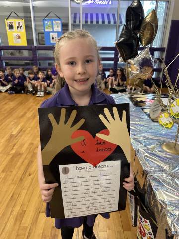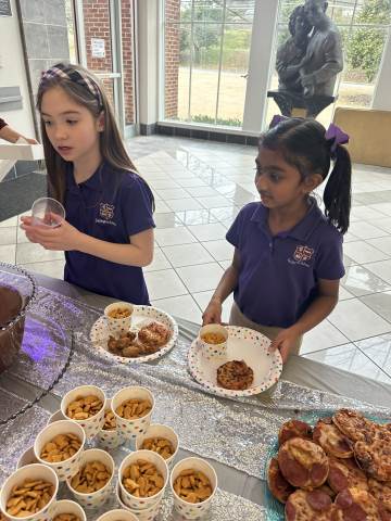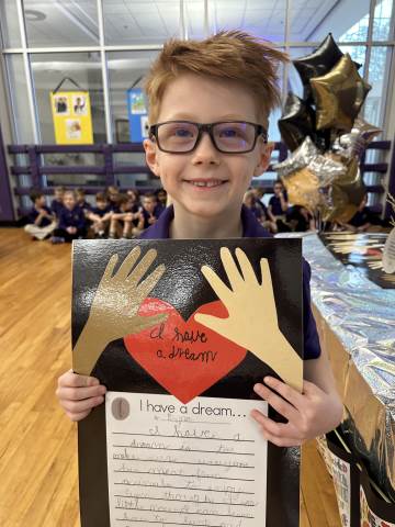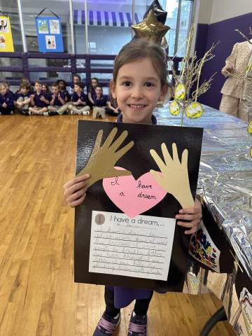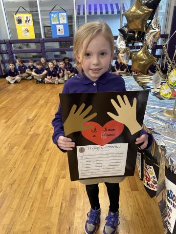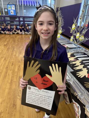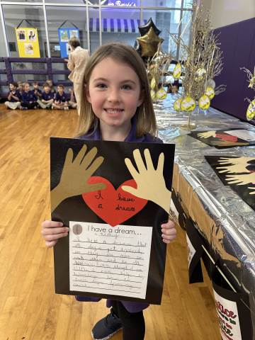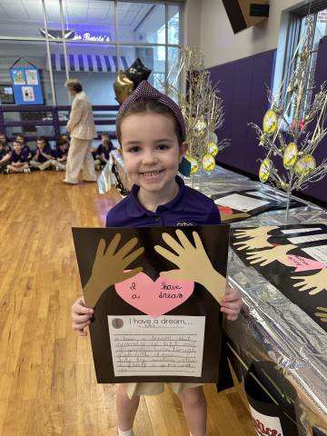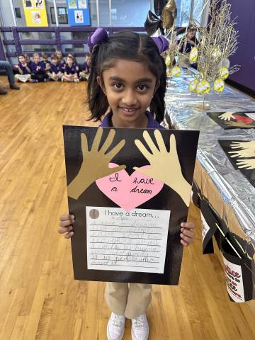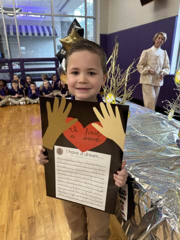 The first-graders hosted a Freedom Tea for family friends. This project was a culmination of a month-long study of Dr. Martin Luther King Jr. Students learned about MLK, his life and his impact on the Civil Rights movement. Most importantly, they reflected on how to incorporate respect, integrity, honor and love into their own lives as first-graders. The students presented a timeline of his life, wrote their own "I Have a Dream" speeches, and presented another student with a Nobel Peace prize for character.