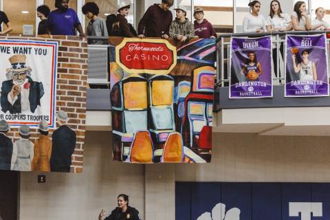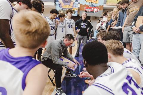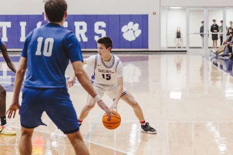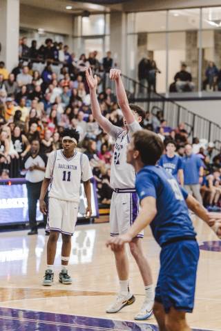 The varsity boys' basketball team defeats Model 63-50 during RUMPUS weekend.