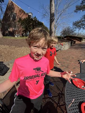 Fourth-graders celebrated Valentine's Day with our annual S'mores party.