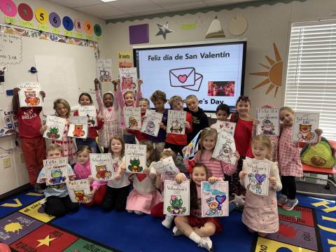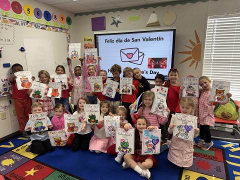 Pre-K and kindergarten celebrated Valentine's Day in Spanish with a partner coloring activity.