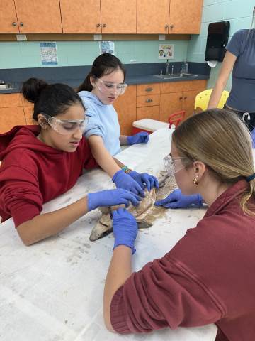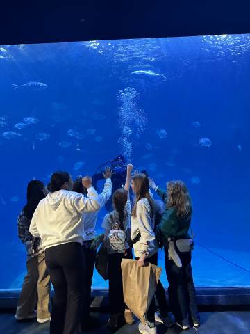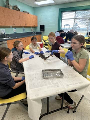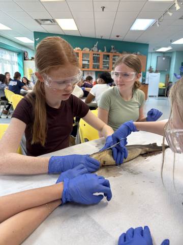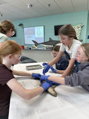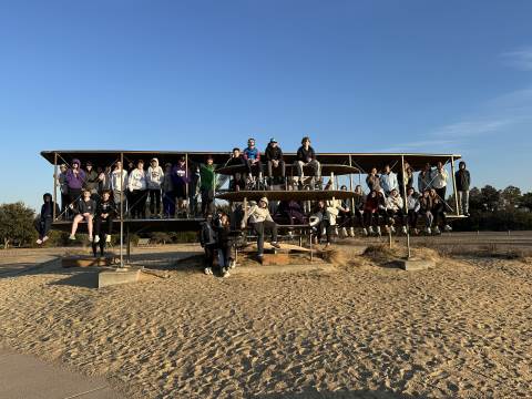 The seventh-grade students had an opportunity to travel back in time by visiting important historical places like Pamplin Park, Williamsburg, Jamestown, and Kitty Hawk to see the Wright Brothers National Memorial. They also got to walk through the Jockey's Ridge State Park. Finally, they got to dissect a shark at the Roanoke Aquarium.