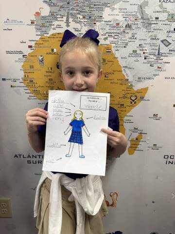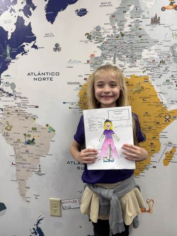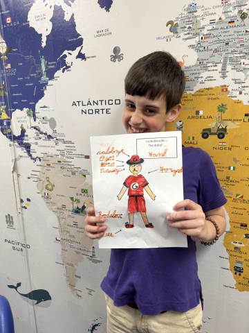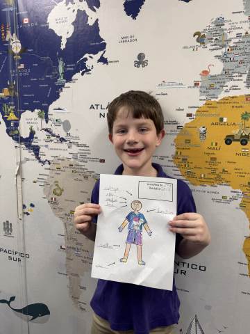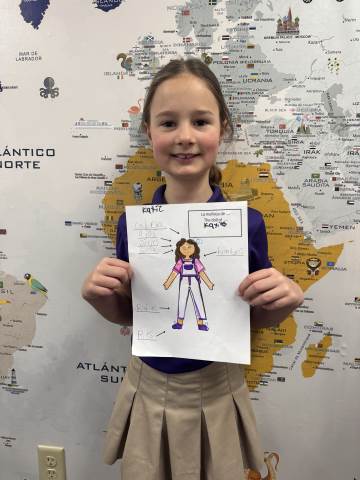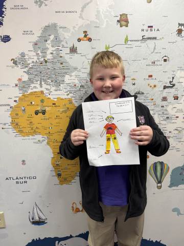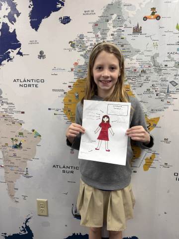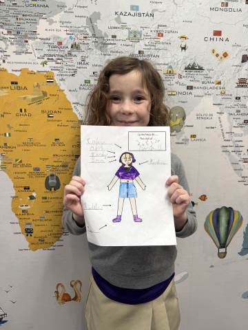 After learning about body parts in Spanish, second-graders designed and labeled their own mini me dolls with everything they've learned.