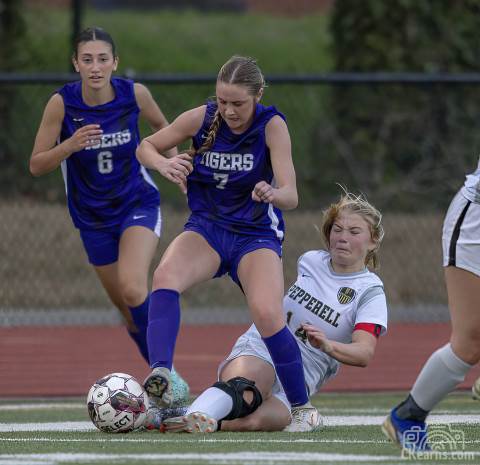 The varsity girls' soccer team defeats Pepperell 2-0.