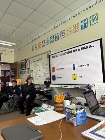 Fifth-grade students designed innovative, life‑saving baking soda containers intended for safe and effective use during grease fires. Their project combined creativity with practical fire‑safety knowledge, demonstrating an impressive understanding of real‑world problem‑solving at a young age.