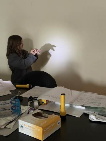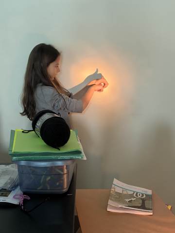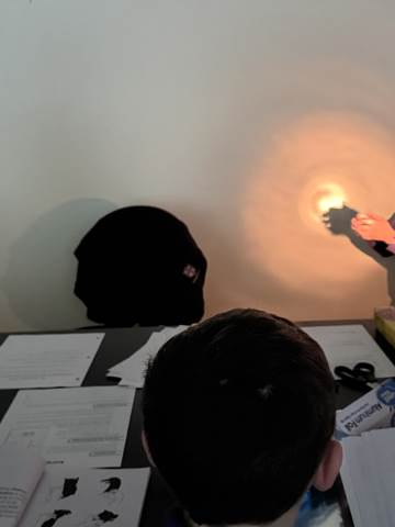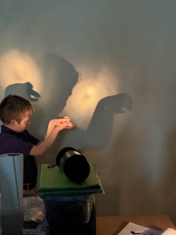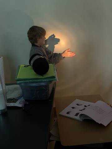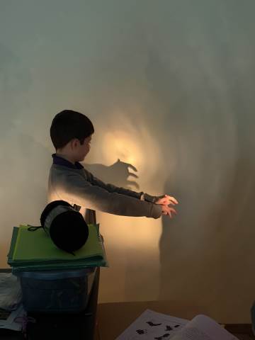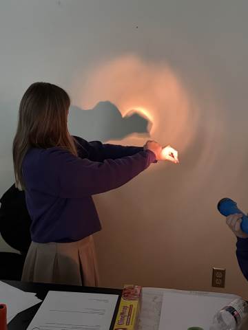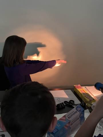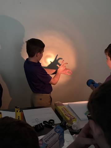 In a continuation of their study of light energy in literacy, third-graders discovered how blocked light can impact the size and shape of shadows. The students used flashlights and discovered the proximity of the light determined how big or small the shadow could be. Creating hand puppets was fun. too!