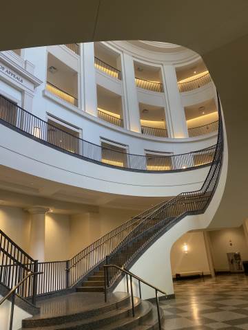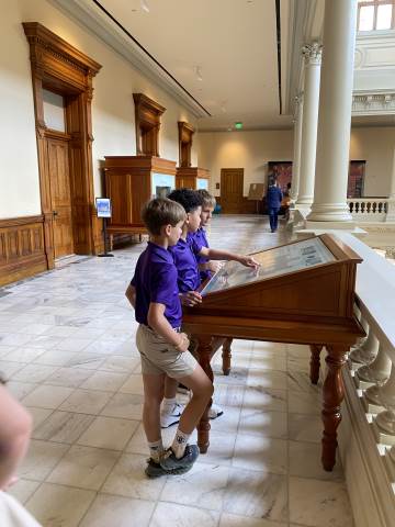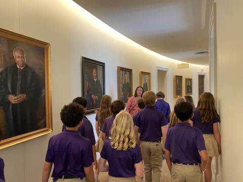The day continued with a Capitol tour alongside Sutton Connelly ('01), father of Branch Connelly, before visiting the Supreme Court of Georgia that he helped to coordinate. There, Chief Justice Nels Peterson led an engaging Q&A session and provided an exclusive behind-the-scenes tour of the Robe Room and the historic Banc Room, where the justices make important decisions.