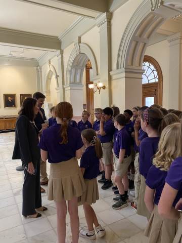 Darlington’s fourth-graders had an unforgettable day at the Georgia State Capitol and Georgia Supreme Court. The group was warmly welcomed by State Rep. Katie Dempsey, who recognized them on the House floor during a live legislative session and later hosted a special pizza lunch inside the Capitol. Students also enjoyed a guided tour led by one of her interns, gaining a firsthand look at Georgia’s legislative process.