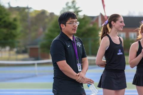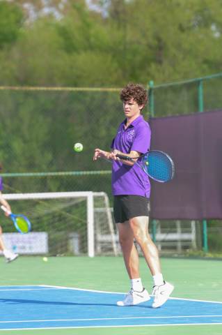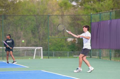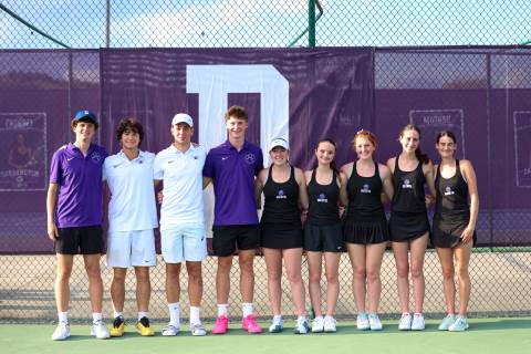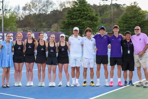 The varsity tennis team competes against Temple on Senior Night.