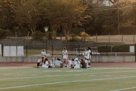 The girls' varsity lacrosse team competes against North Cobb High School at home.