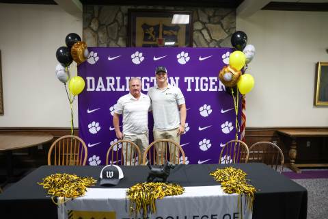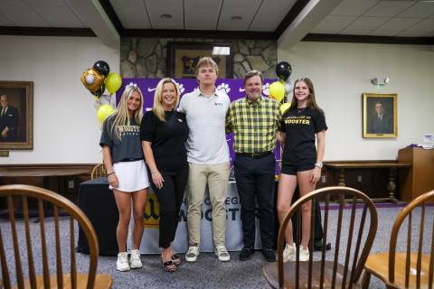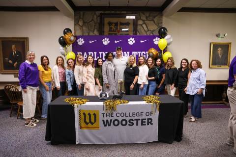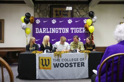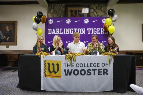 Henry Ledbetter ('26) signs his letter of intent to play baseball at the College of Wooster.