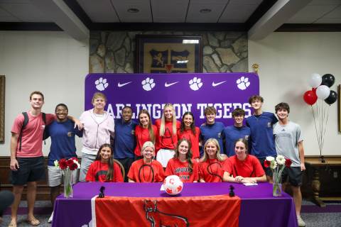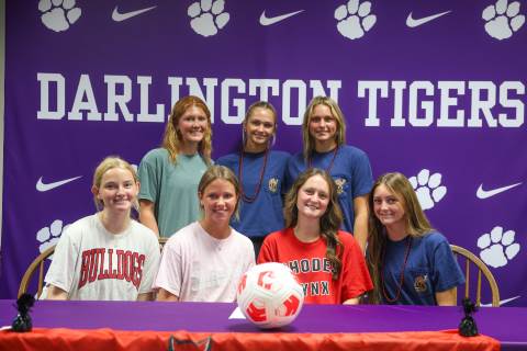 Savvy Palmer signs her letter of intent to play soccer at Rhodes College.