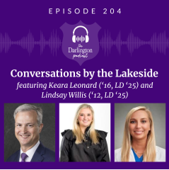 In this episode of Conversations by the Lakeside, host Head of School Brent Bell talks with Keara (Evans) Leonard (’16, LD ’25) and Lindsay (Evans) Willis (’12, LD ’25) about their Darlington story and what it meant to share the Leadership Darlington experience in 2025 as sisters.