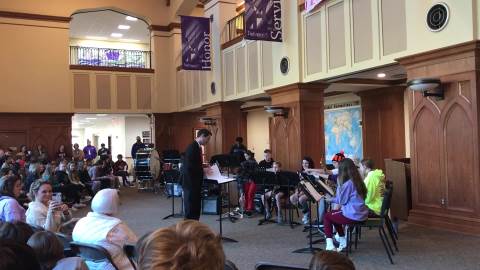 The Middle School Jazz Band has moved so quickly this semester, and they were ready to perform a concert for friends and family on Tuesday, Feb. 8. The band had prepared four pieces, each of a very different jazz style. This added to the spirit of our Middle School Spirit Week.