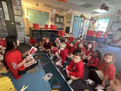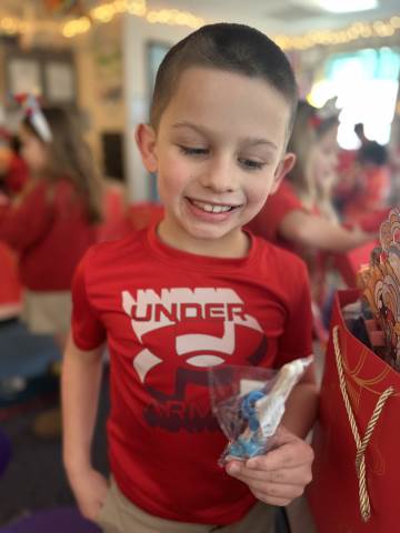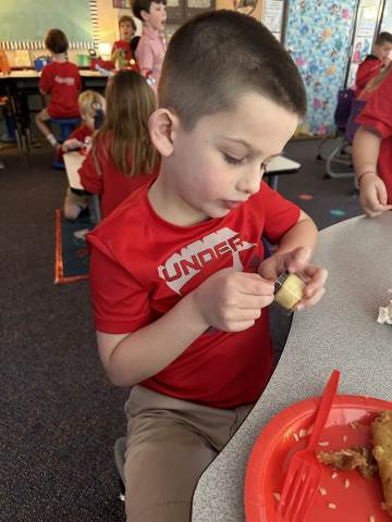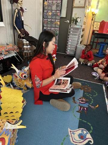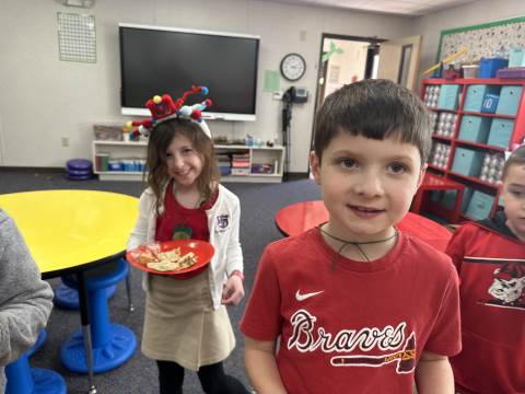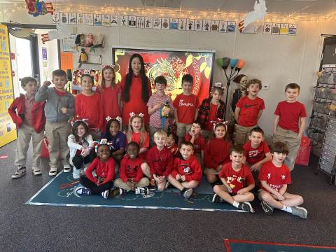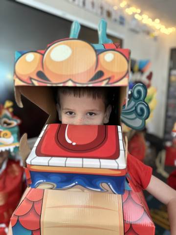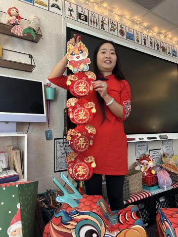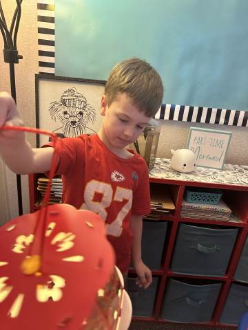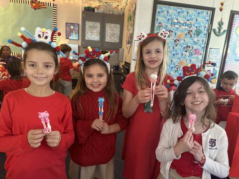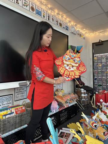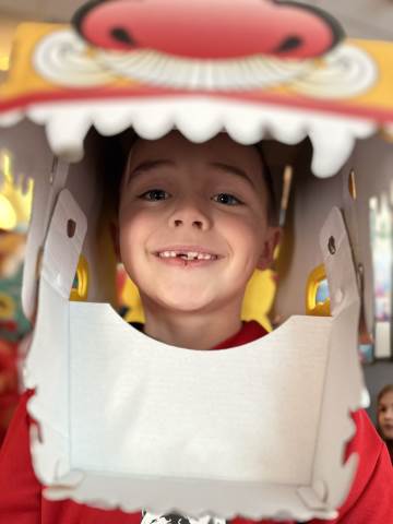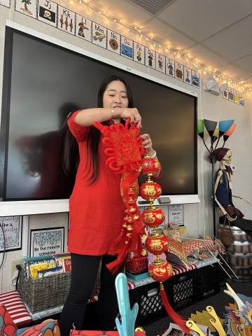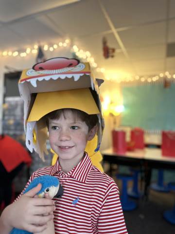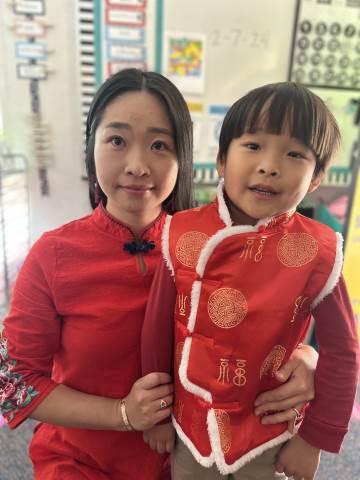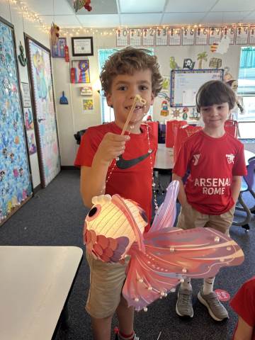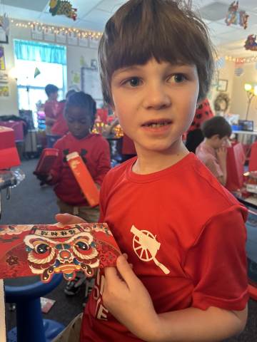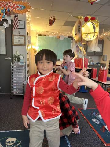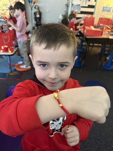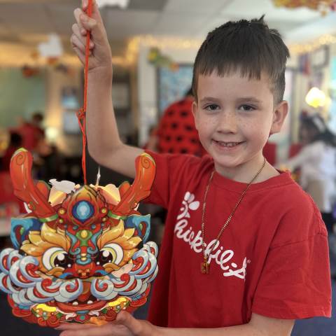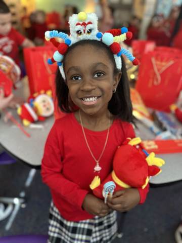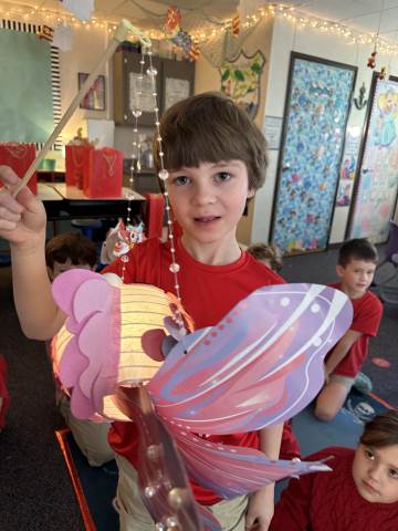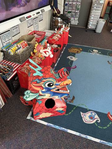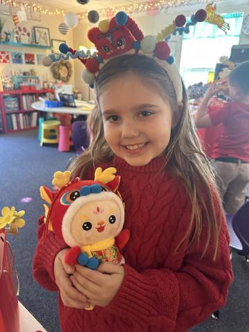 First-graders, with the help of Austin’s mom, Cloris, began celebrating the Chinese New Year today. We learned about the history of the holiday, Chinese traditions and enjoyed some delicious food. Students enjoyed looking at traditional Chinese lanterns, using their own chopsticks and wearing dragon masks while dancing to traditional Chinese music for the Year of the Dragon.