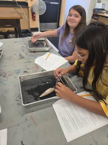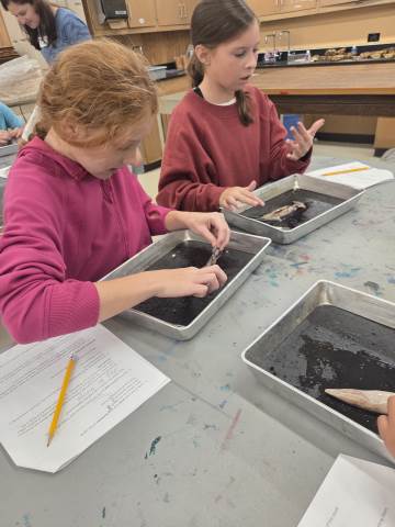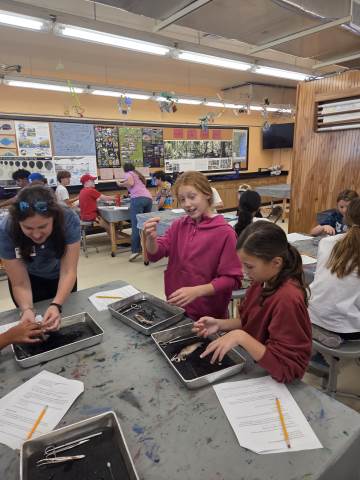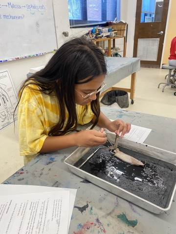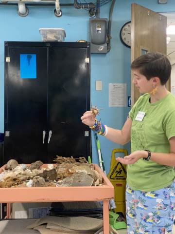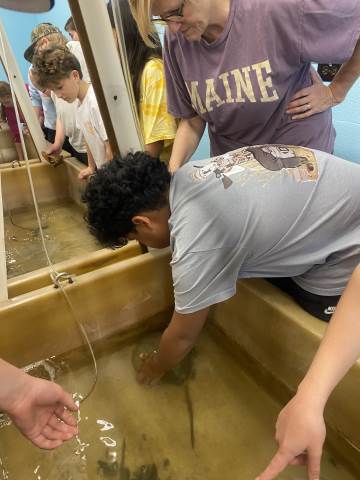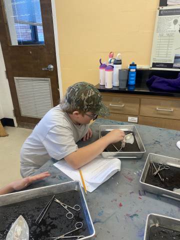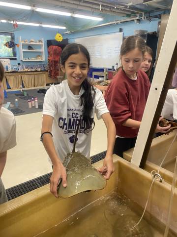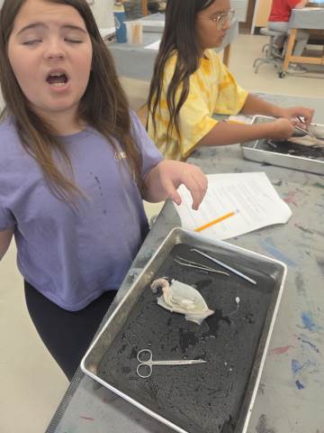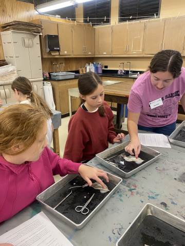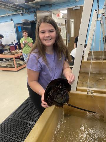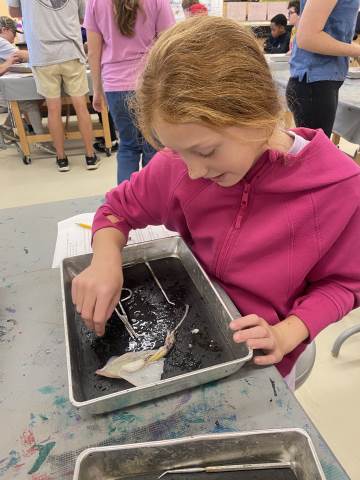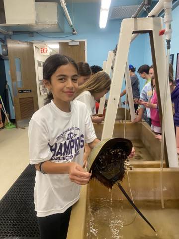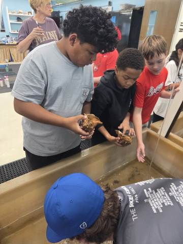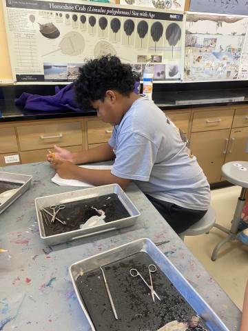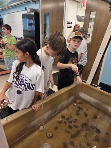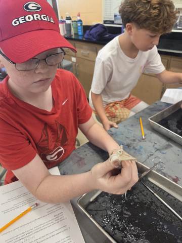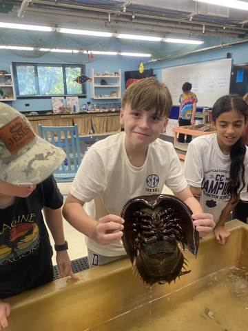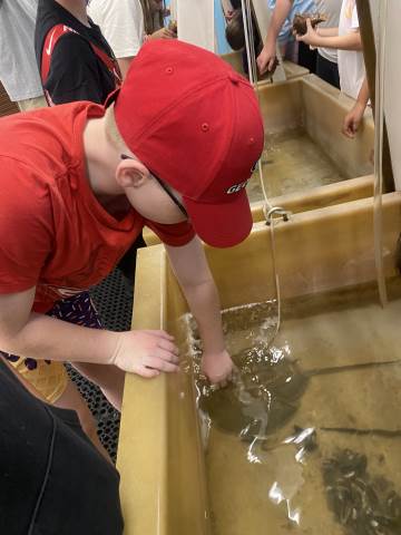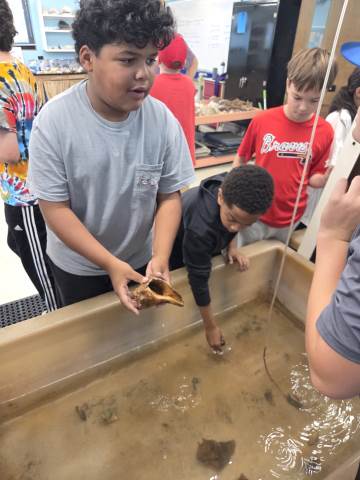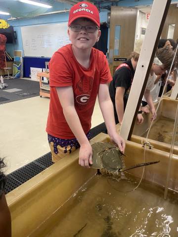 On day three in Skidaway Island, Group A had a great time in the touch tank exploring with their hands. Students were able to hold sea spiders, conk shells, and horseshoe crabs. The morning was finished by dissecting a squid and completing a lab sheet on all of its interesting body parts. For a half a day, lots of fun and learning was had by all the students.
